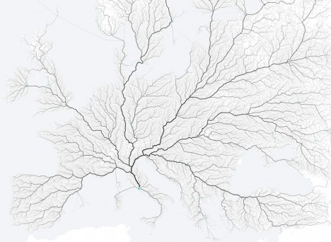 Die Jungs und Mädels von Moovellab haben wunderschöne Karten, die aussehen wie eine arterielle Verästelung erstellt, die belegen, dass tatsächlich alle Wege und Straßen nach Rom führen.