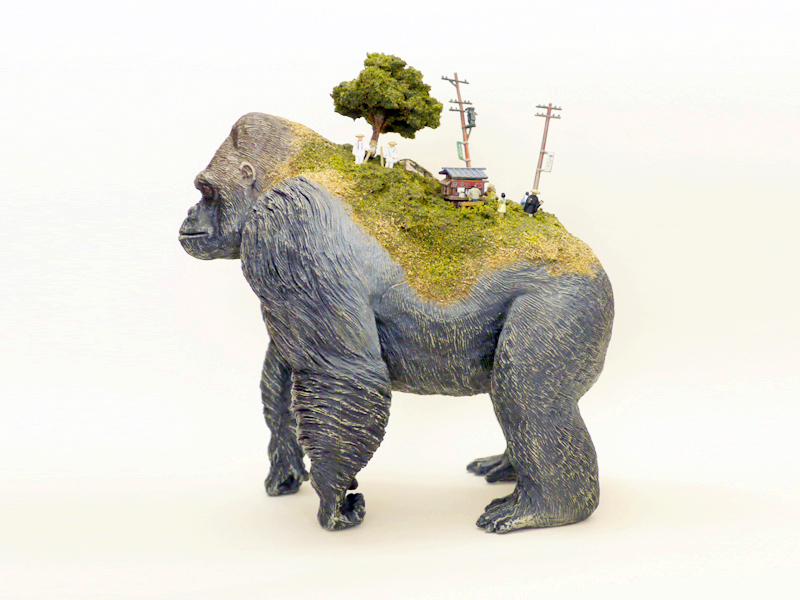 Toy Mammals and Dinosaurs Burdened with Miniature Civilizations by Maico Akiba | Colossal.