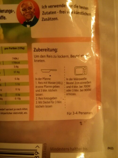 Jedenfalls befand sich in unserer Küche noch ne Fertigpackung Uncle Bens Reis und da ich eh frühstücken musste und immer Lust auf Experimente habe, kam mir das ganz recht…